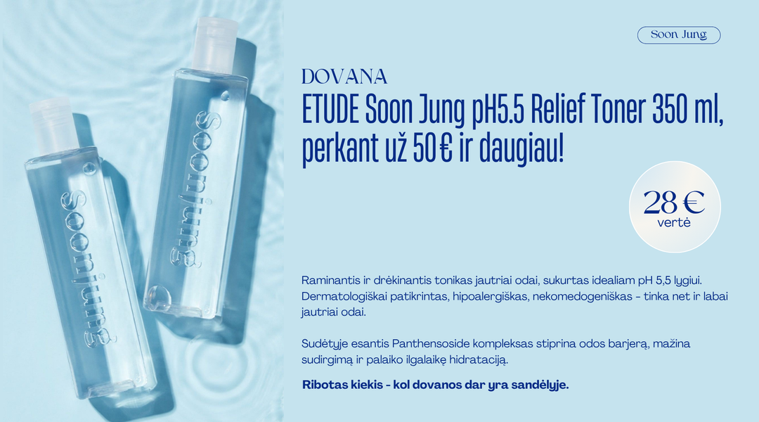 Perkant už 50 € ir daugiau, gaukite ETUDE Soon Jung pH5.5 Relief Toner 350 ml (28 € vertės) visiškai nemokamai!